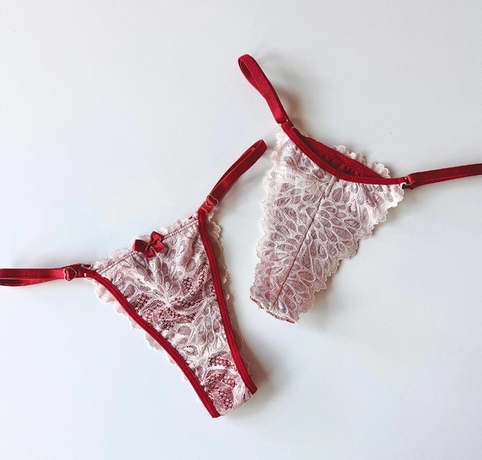 Confeccionada em renda delicada, sua modelagem semi fio valoriza as curvas com sutileza, enquanto o design com tiras reguláveis nas laterais permite um encaixe perfeito ao corpo.
