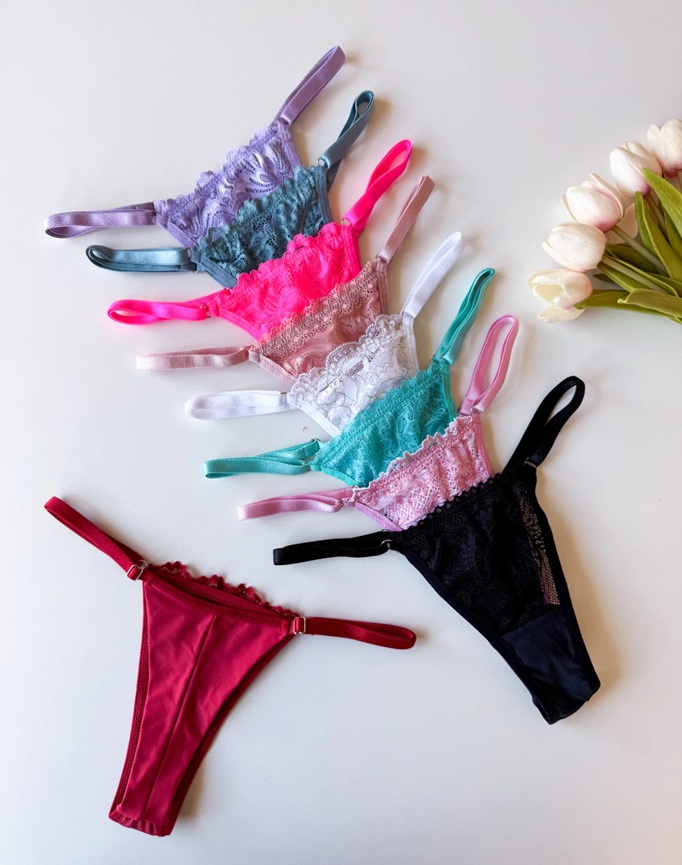 Suas laterais finas com tiras ajustáveis permitem um encaixe preciso ao corpo, enquanto o fundo 100% algodão garante cuidado íntimo e respirabilidade para uso prolongado.